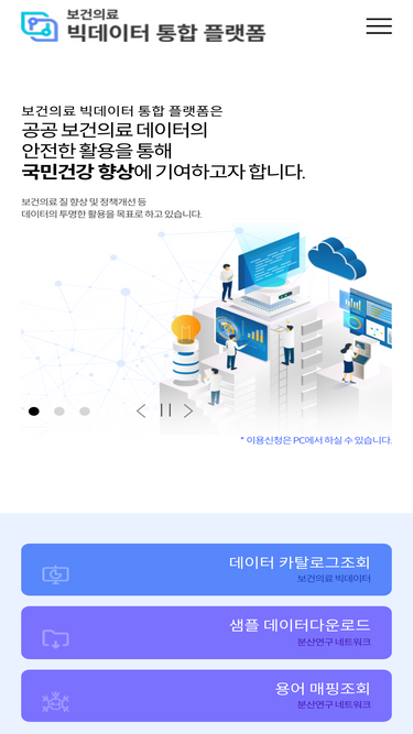 79%공공 보건의료 데이터 활용을 통한 국민건강 향상을 비전으로, 보건의료 빅데이터와 분산연구 네트워크 사업을 통합하여 보건의료 질 향상 및 정책개선, 개방 등 그리고 보건의료 데이터의 안전하고 투명한 활용을 목표로 합니다.