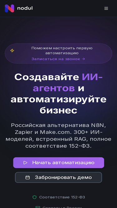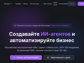 88%Российская альтернатива N8N, Zapier и Make.com. 400+ ИИ-моделей, 5000+ интеграций, встроенный RAG, полное соответствие 152-ФЗ.