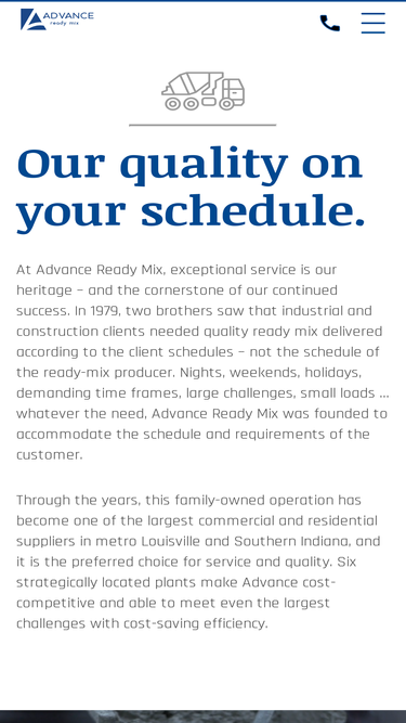 97%at advance ready mix, exceptional service is our heritage -- and the cornerstone of our continued success.