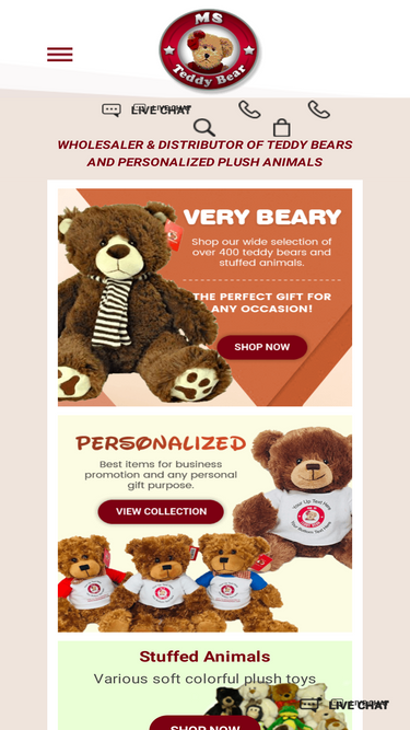 78%ms teddy bear, is a manufacturer and wholesaler of teddy bears and stuffed animals. we carry hundreds of different stuffed animals. with 16 years of experience, we specialize in stuffed animals for gifts and other occasions.