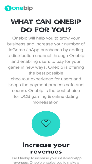 90%onebip offers you a way to monetise your ingame/app purchases using the mobile operator phone bill through dcb direct carrier billing and psms