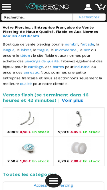 100%Piercing Anneau / Oreilles / Helix / Intime/Sexe / Seins/Tétons / Lèvres/Labret / Nez / Acier chirurgical 316L avec fermeture à boule (ball closure ring) standard.