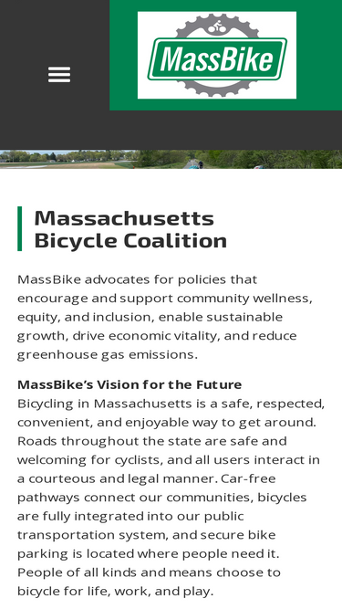 100%MassBike is Massachusett's Statewide Bicycle Advocacy Group. Our Mission is to Improve Bicycling Across the State Through Legislation, Education & Outreach.