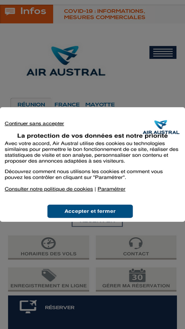 86%Voyagez au meilleur prix avec les vols Air Austral vers la Réunion, Maurice, Mayotte, Madagascar, Comores, Afrique du Sud, Thailande, Inde. Réservez votre vol Air Austral