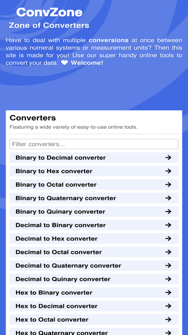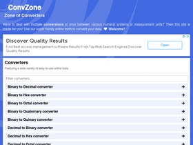 convzone.com ranks as the 4th most similar website to binaryhexconverter.com and binary2hex.com ranks fifth in February 2026.