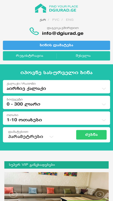 95%HOME.GE - უძრავი ქონება მოძებნე ბინები, სახლები და აგარაკები, კომერციული ფართები, მიწის ნაკვეთი, სასტუმრო, ავტოსადგომი, მოძებნე ან განათავსე განცხადება!
