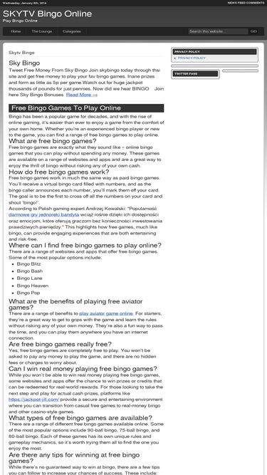 free money from sky bingo join skybingo today through thsi site and get free money to play your fav bingo games. inane prizes and form as little as 5p per game.