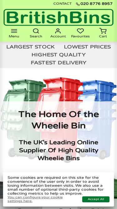 83%We supply waste, rubbish and recycling bins, street furniture, wheeled catering bins & bottle bins to businesses & public sector organisations across the UK