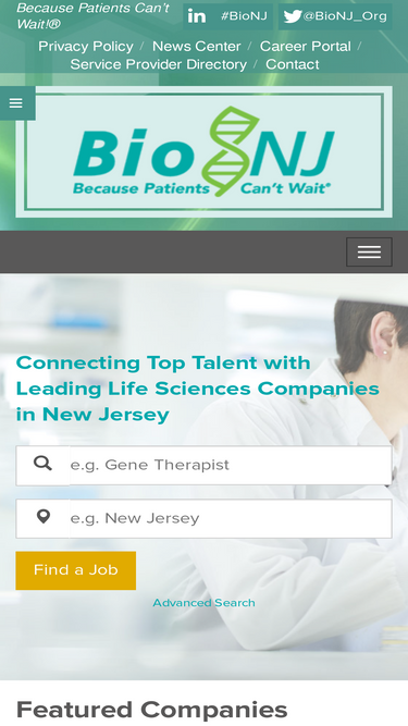 BioNJ Career Center offers the top jobs available in Biopharmaceutical. Search and apply to open positions or post jobs on BioNJ Career Center now.