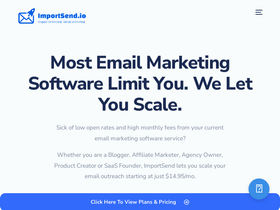 89%See why ImportSend.io is the easiest email newsletter software with unlimited subscribers, high deliverability – all at a price you’ll love.