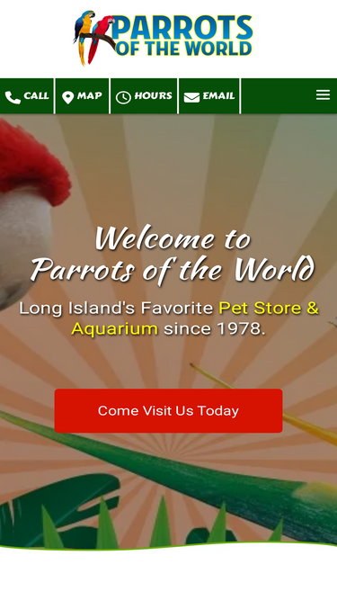 78%Parrots of the World Ltd. is a full service pet store located in Rockville Centre, NY featuring one of the largest selections of parrots and exotic animals. Parrots of the World is operated by television personality and pet expert Marc Morrone and is featured on Martha Stewarts television shows. Buy healthy parrots and pets from the premier pet shop on Long Island.