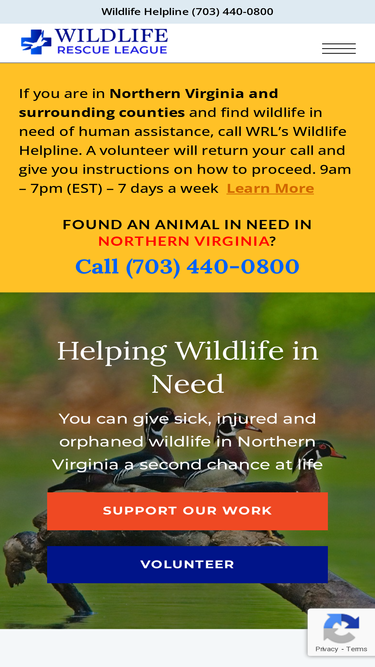 92%For non-emergency questions email wrl@wildliferescueleague.org. For wildlife assistance, call wildlife helpline at 703-440-0800.