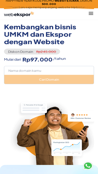 100%Web Ekspor bikin website ekspor dan UMKM murah cuma hitungan jam tanpa ribet, yuk cek domain kamu sekarang juga. Kami membantu eksportir/umkm untuk membuat website secara mudah dan murah untuk keperluan bisnis mereka.