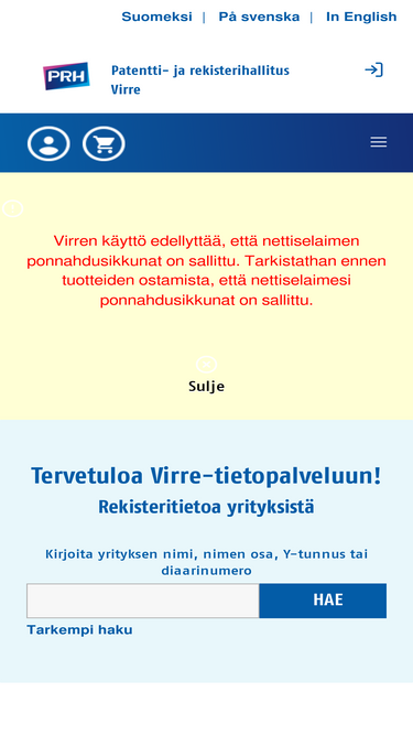 87%Virre on kauppa-, yrityskiinnitys- ja säätiörekisterien yhteinen tiedontarjontapalvelu
