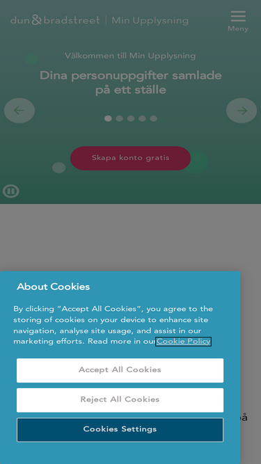 82%på min upplysning kan du se din kreditprofil helt gratis. få alla upplysningskopior från dun & bradstreet digitalt. bevaka dina personuppgifter och se ditt kreditscore med min bevakning och bevaka företag med företagsbevakning.
