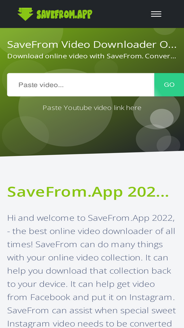 69%savefrom is the best online video downloader. here you can download videos from more than 100 websites: facebook, instagram, twitter, vimeo etc.
