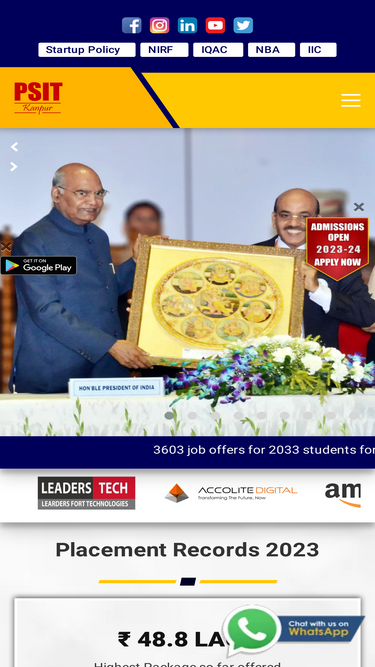 100%PSIT Kanpur is among India's top engineering institutions, offering innovative, skill-focused undergraduate and postgraduate engineering programs.