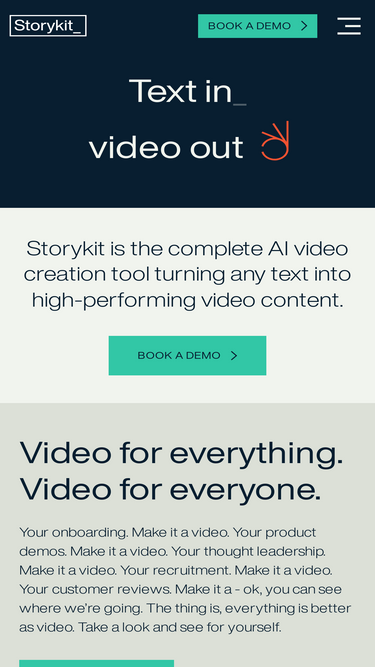 Explore the full range of features to see how Storykit can revolutionize your video creation process. Video for everything. Video for everyone.