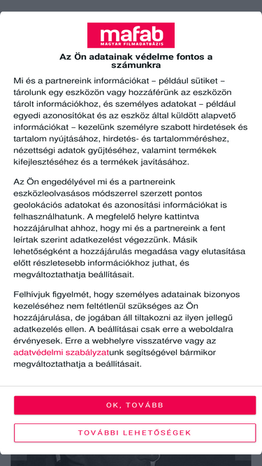 66%Tudod, hogy miért használja már több mint 1,5 millió magyar a Mafab.hu-t, a Magyar Filmadatbázist? Mert a Mafab a garancia arra, hogy minden alkalommal jó filmet találj magadnak. Használd Te is Magyarország legnagyobb filmadatbázisát tele érd