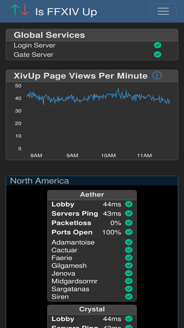 98%reporting the server status for final fantasy xiv (ffxiv)