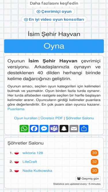 100%İsim Şehir Hayvan - çevrimiçi oyun #IsimSehirHayvan
