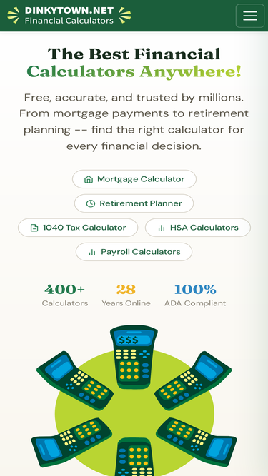 85%financial calculators from dinkytown.net are the best way to start almost any financial analysis. simple to use, complete and thorough analysis. use them at www.dinkytown.net or put them on your website!