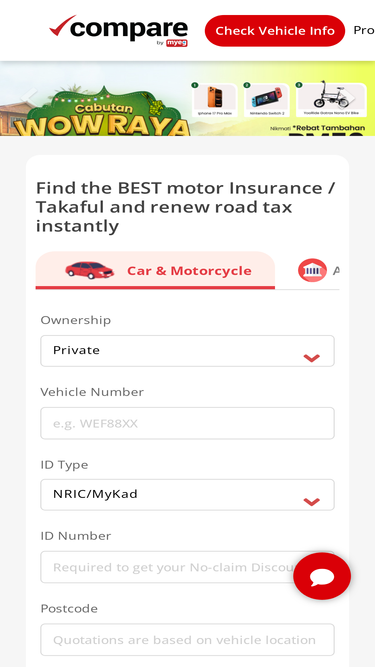 Get instant online car & takaful insurance quotes and compare rates from top providers in Malaysia. Save money on your policy and get the coverage you need.