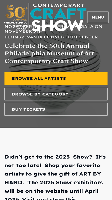 100%The 2025 Show will welcome a total of 195 talented artists representing 13 diverse categories of craft and design. All work is for sale and the artists receive 100% of their sale proceeds.
