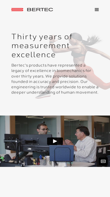 92%Bertec's products have represented a legacy of excellence in biomechanics for over thirty years. We provide solutions founded in accuracy and precision. Our engineering is trusted worldwide to enable a deeper understanding of human movement.