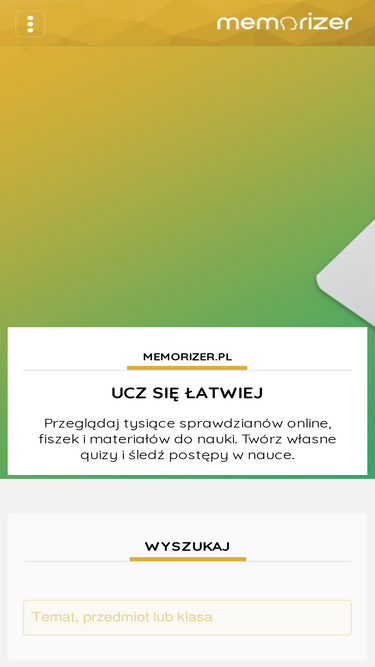 zapamiętuj szybciej rozwiązując testy online. memorizer, nowoczesne narzędzie elearngowe do nauki poprzez quizy,testy i fiszki. ucz się rozwiązując testy lub za pomocą powtórek materiału.