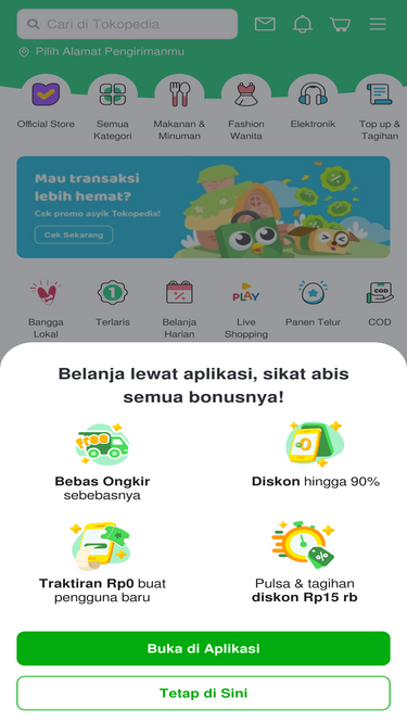 66%Beli sampai bayar dapet gratis ongkir/cashback, game hadiah jutaan, dan Serbu Seru pake recehan. Makhluk sejagat raya aja pake aplikasi Bukalapak!