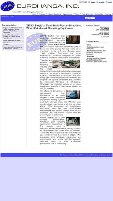 eurohansa inc. industrial shredder and industrial grinder manufacturer for every application. industrial grinder manufacturer. industrial shredder manufacturer. shredder manufacturer. grinder manufacturer. recycling, wood, municipal waste, industrial waste, alternative fuel, plastic, paper, destruction, grinders, chippers, horizontal hog.