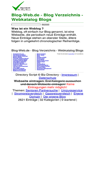 87%blogwebkatalog ist ein blog verzeichnis. blogs können sich in einer einzelnen kategorie im blog webkatalog kostenlos eintragen.