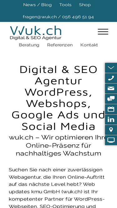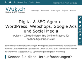 100%wuk.ch webagentur für kompletten wordpress service, seo-optimierungen und digital marketing beratungen. telefon 056 496 51 94 ✉ fragen@wuk.ch.