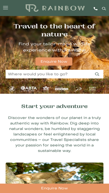 81%rainbow tours offers tailor-made holidays to africa, madagascar and latin america. speak to our travel specialists today to book your next destination.