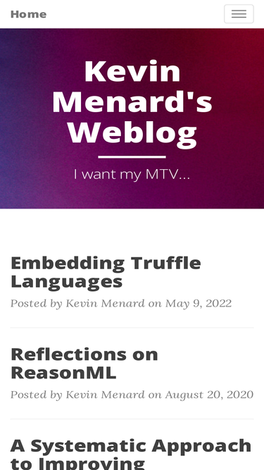 76%technical articles by kevin menard. topics include ruby, java, machine learning, and general computing.