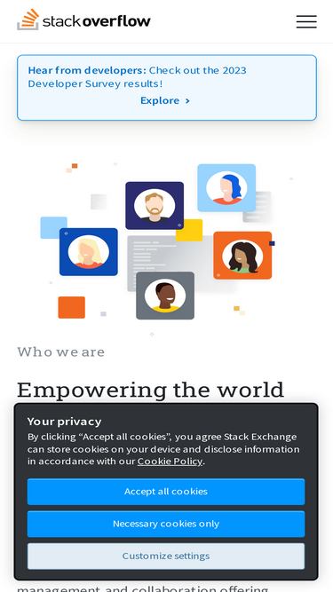 95%founded in 2008, stack overflow’s public platform is used by nearly everyone who codes to learn, share their knowledge, collaborate, and build their careers.