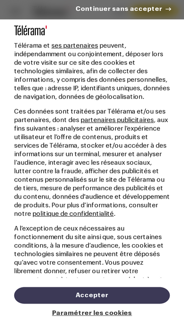 44%Découvrez l’ensemble des newsletters de Télérama. Télévision, Sortir, Cinéma… inscrivez vous et recevez directement les articles sélectionnés par la rédaction dans votre boite mail