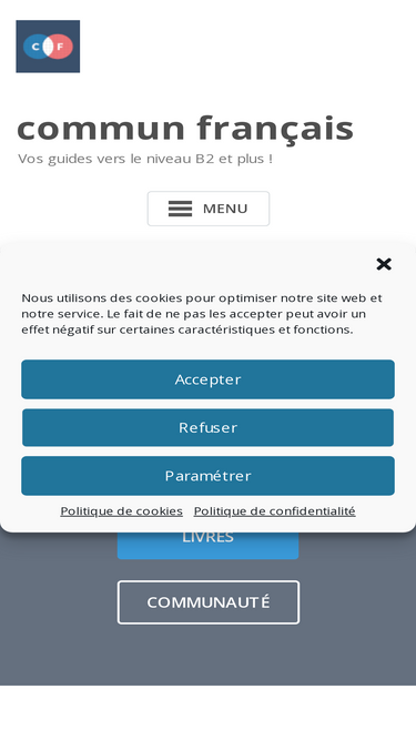 92%Vos guides vers le niveau B2 et plus ! Nos livres et nos forums sont là pour améliorer votre français à l'écrit et à l'oral.