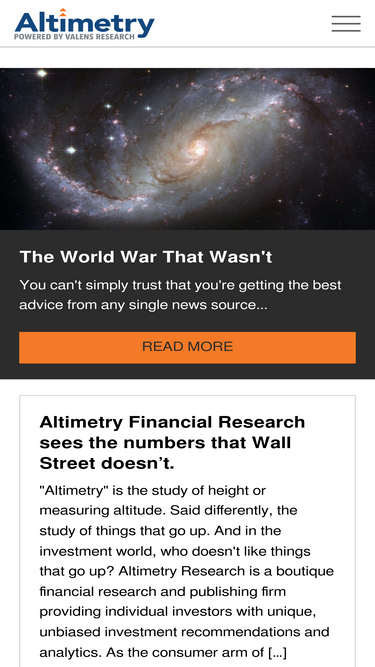 74%What is Altimetry? Altimetry is a boutique financial research and publishing firm providing individual investors with unique, unbiased investment recommendations. As the consumer arm of Valens Research, we leverage the same underlying datasets, investment philosophy, and strategies. Primarily, we are guided by the knowledge that U.S. accounting guidelines – which American public companies are forced to follow – obscure the true results of a company's profitability, misleading investors. Warren Buffett: "The net earnings figure... is not representative of the business at all." Forbes: "Why GAAP Accounting Rules May Be Damaging to Investors." Billionaire hedge-fund manager Seth Klarman: "Analysis of reported […]