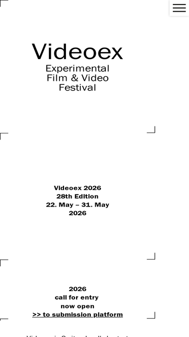86%videoex ist das einzige festival in der schweiz, das sich explizit dem experimentellen film- und videoschaffen widmet und dieses in einem kinematografischen rahmen präsentiert. neun tage lang zeigt videoex erfrischende, kompromisslose, grossartige, genial einfache und berauschend komplexe experimentelle filme und videos: werke jenseits des konventionellen narrativen kinos.