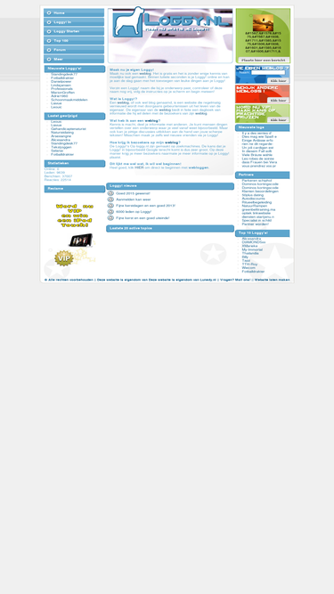 96%loggy! is de snelst groeiende weblog site van nederland! je meldt je gratis aan, geen reclame en volledig de vrije hand qua ontwerpen! dit maakt webloggen leuk voor iedereen! houd online je dagboek bij, houd leuke discussies met je bezoekers, verdien een centje bij en wie weet maak je zelfs wel nieuwe vrienden! het kan allemaal op loggy!
