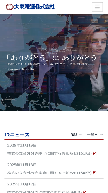 ひと目でわかる大東港運です。 輸入通関取扱量 全国シェア、AEO認定通関業者、輸出入通関実績件数などの 大東港運の特色が伝わる情報をご紹介しています。