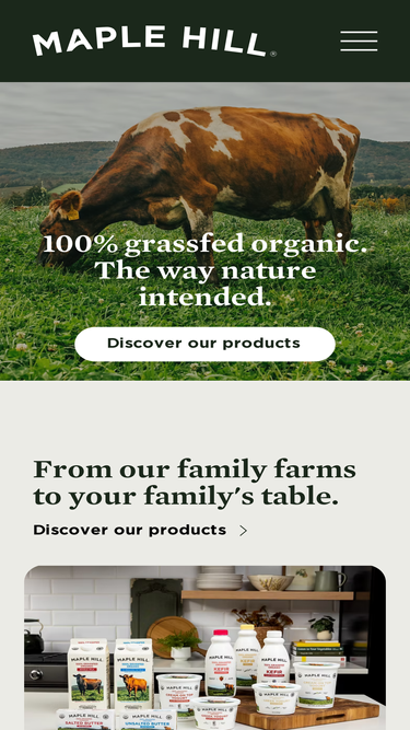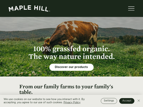 64%At Maple Hill Creamery, our 100% grass-fed organic dairy products are made with real certified organic ingredients. Made humanely through regenerative methods, with no antibiotics, hormones, GMOs or additives. USDA & PCO certified, as well as Kosher. We're proud to be transparent about our sustainable process & ingredients.