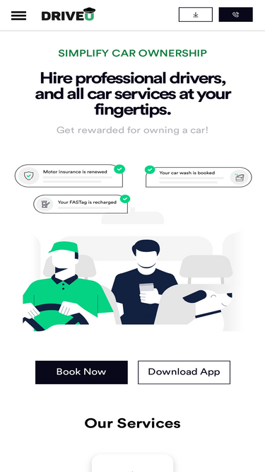 83%Hire professional car drivers for local and outstation drives. Services available 24x7 on-demand. Download the app to book now and explore many car services on your fingertips such as car wash, car servicing, insurance renewal, FASTag recharge & much more... Get rewarded for every transaction.