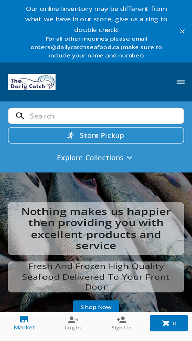 82%Have a question? We have answers. Here are some common ones: How do you carry only 100% sustainably sourced seafood? We only carry seafood that has been recommended as a sustainable choice by reputable organizations such as Ocean Wise, ASC, MSC, and Fairtrade. We work very closely with our fishermen, fisherwomen, and suppliers to make sure sustainable fishing and aquaculture practices have been used., Where do you deliver? Please check out our Zones (where we deliver) page for the latest delivery areas, minimums, and cutoffs., How do you ship seafood? We ship high quality sustainable seafood right to your door! We always choose the most reliable and quickest shipping method available. Depending on your location and the weight of your order, shipping fees/rates may differ. Depending on the size of the products and size of your order, shipping packages may differ. Most Importantly, we pack to keep your order cold! If your order shows up spoiled we will refund your seafood!, Location/Hours We are located in the heart of Vancouver, on the coolest street in the city, Commercial Drive!Address: 1418 Commercial Drive V5L 3X9Contact: (604) 253-3474 or Orders@dailycatchseafood.caWe are open 7 days a week!Fall/Winter Hours:11am-6pm DailyHoliday Hours may differ *Please note that sometimes the inventory and pricing that you see online may differ from what we have in store., etc.