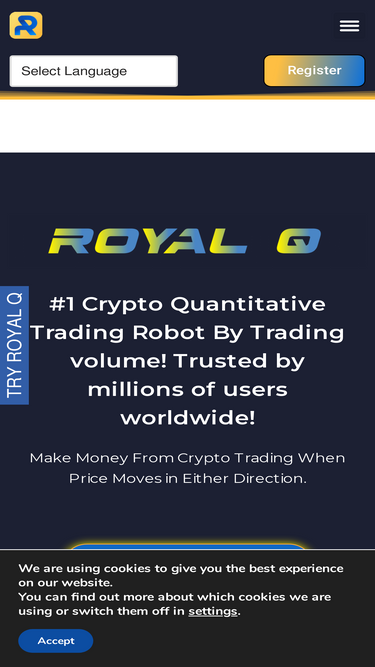 92%Royal Q or RoyalQ is the world’s first 100% quantitative crypto trading made by an AI robot and trusted by millions of users worldwide.