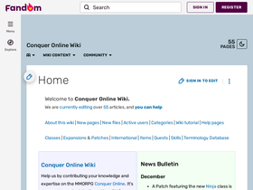 85%welcome to conquer online wiki. we are currently editing over 55 articles, and you can help about this wiki | new pages | new files | active users | categories | wiki tutorial | help pages classes | expansions & patches | international | items | quests | skills | terminology database conquer...