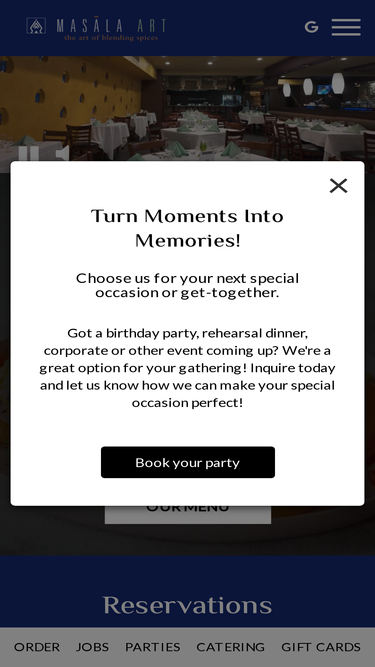 As a pioneering Indian restaurant in the Boston area, we are delighted to share with our guests the vibrant culture, rich artistic heritage, enduring spiritual traditions, and unique regional flavors of our homeland. Many of our signature dishes are cherished family recipes passed down through generations, while others are inspired by the vast and colorful tapestry of India�s culinary landscape. Namaskar, and welcome - visit Masala Art for a truly delightful and authentic culinary experience.