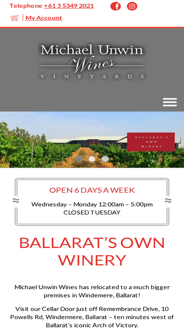 Hi, thanks for visiting our website. Questions or comments? Please drop us a line here. Alternatively you can always ring the winery on: Telephone +61 3 5349 2021 Located at 10 Powells Rd Windermere – Ballarat, VIC 3352 (off Remembrance Dr) Open 6 days a week Wednesday to Monday – 12.00am to 5.00pm CLOSED TUESDAY
